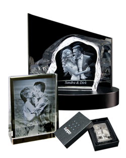 Die Contento 2D & 3D Laserinnengravur sowie die Oberflächengravur-Techniken kommen im Bereich persönliche Fotogeschenke zum Einsatz und sind für die Individualisierung persönlicher Geschenkideen besonders geeignet.